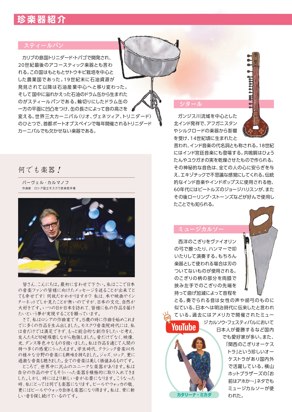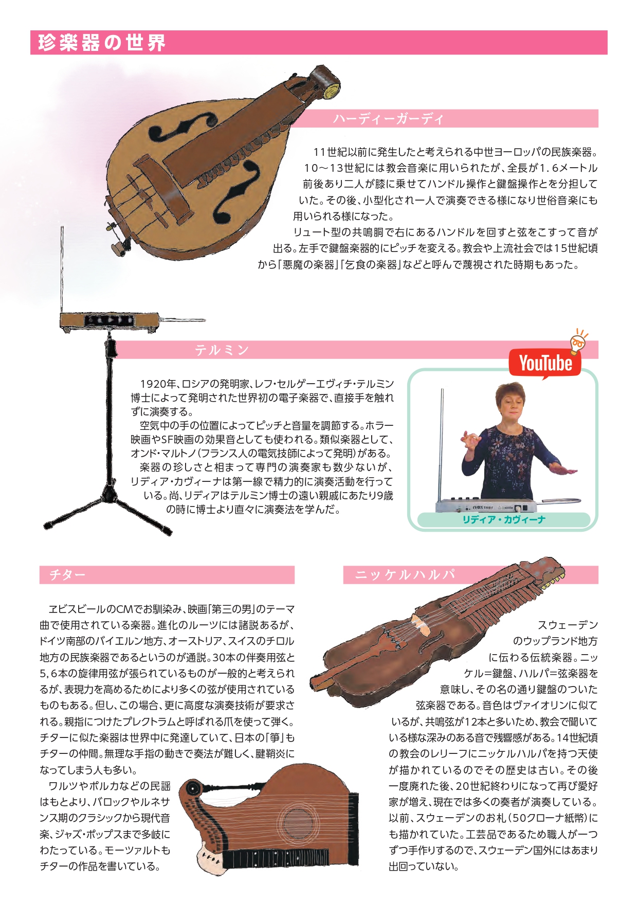 尚、「クラシックって楽しいな!(珍楽器にまつわるエトセトラ)」は、日本全国約1250箇所の主要音楽ホールに各200部ずつ(計25万部)送付され無料配布しております。また、当協会主催コンサートの会場でも、来年度以降も継続して配布される(計5万部)予定です。各会場でお気軽に入手の上ご覧頂ければ有難く存じます。